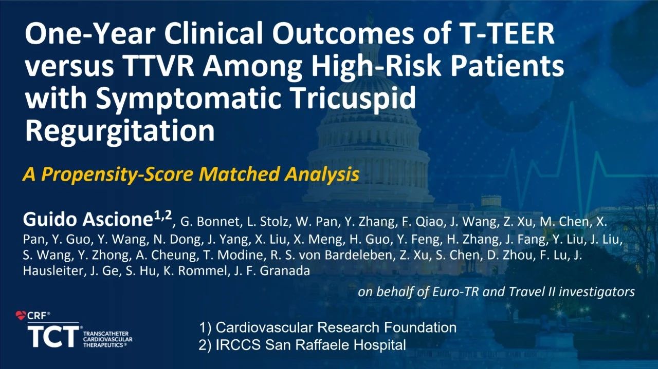 來自美國心血管研究基金會(Cardiovascular Research Foundation, New York, U.S.)的Guido Ascione博士進行了一項有癥狀的三尖瓣返流高?;颊逿-TEER與TTVR的一年臨床結果:傾向評分匹配分析,他在分析后發(fā)現(xiàn),三尖瓣置換(TTVR)相對于緣對緣修復(T-TEER)有著更高的手術成功率,且一年后的臨床結果和功能評分中,置換和緣對緣相比并無統(tǒng)計學差異。