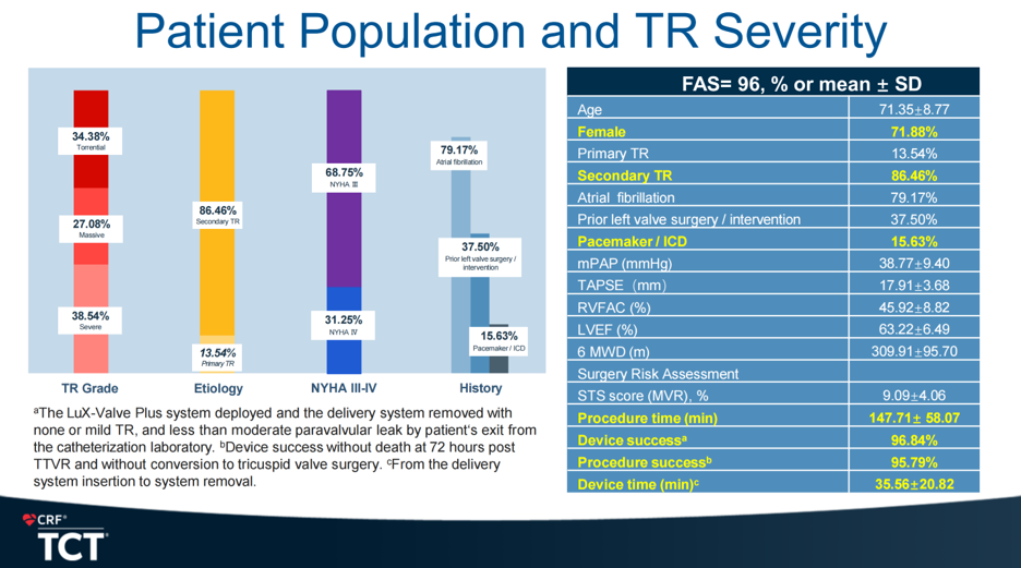 近期,LuX-Valve Plus在2024美國經(jīng)導管心血管治療學術會議(TCT 2024)上,正式全球公布了TRAVLE II 臨床試驗研究1年期隨訪結(jié)果,這是繼今年6月紐約瓣膜會(New York Valves 2024)6個月隨訪結(jié)果公布后的再一次重磅成果分享,展示了經(jīng)導管三尖瓣介入置換領域的重大研究發(fā)現(xiàn),其結(jié)果令人矚目。