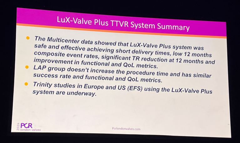 在2024年11月24-26日舉行的 PCR London Valves 2024 大會上,LuX-Valve Plus 再次成為關(guān)注焦點。從來自中國的大尺寸瓣環(huán)患者1年臨床數(shù)據(jù)到來自歐洲、香港和巴西的手術(shù)植入經(jīng)驗全面立體的呈現(xiàn)了其如何為三尖瓣治療提供全新的機遇及未來前景。