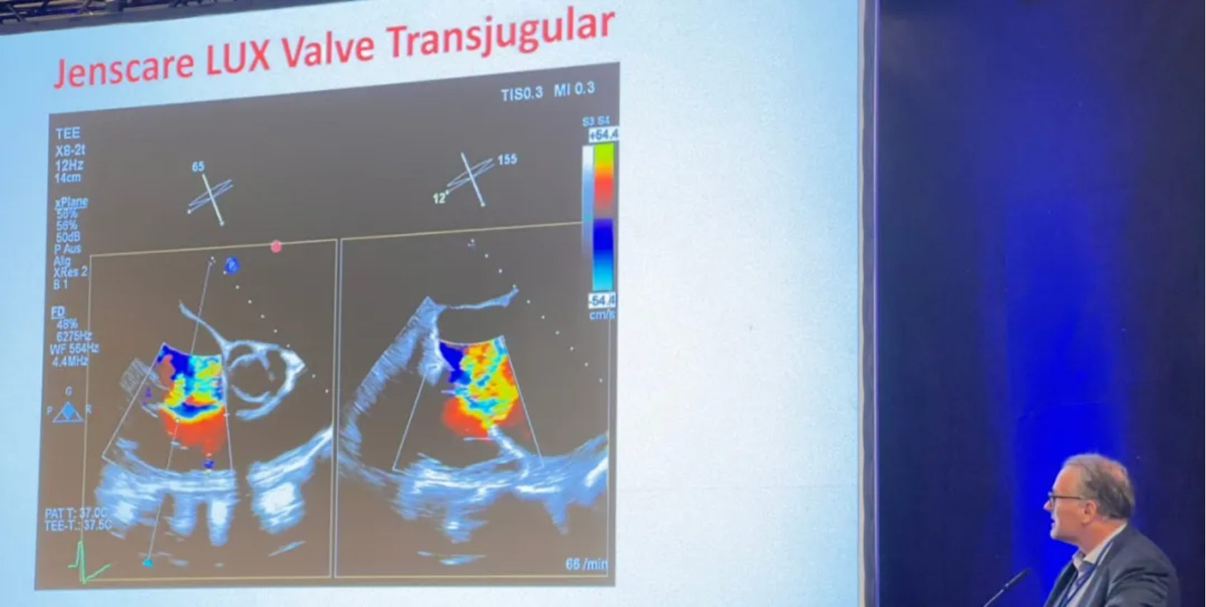 此外,這位教授還分享了與一位法國教授攜手完成的2例真實(shí)病例,并對其進(jìn)行了講解。術(shù)式團(tuán)隊(duì)在超聲與DSA等多維影像手段的支持下,精準(zhǔn)嫻熟地完成LuX-Valve Plus瓣膜的植入,器械操作時(shí)間僅為30分鐘,瓣膜植入后術(shù)中即刻三尖瓣反流消失,多普勒超聲下無明顯瓣周漏或中心性反流,肺動(dòng)脈壓正常,人工瓣膜運(yùn)動(dòng)正常,術(shù)后兩位患者狀態(tài)穩(wěn)定,安返病房。