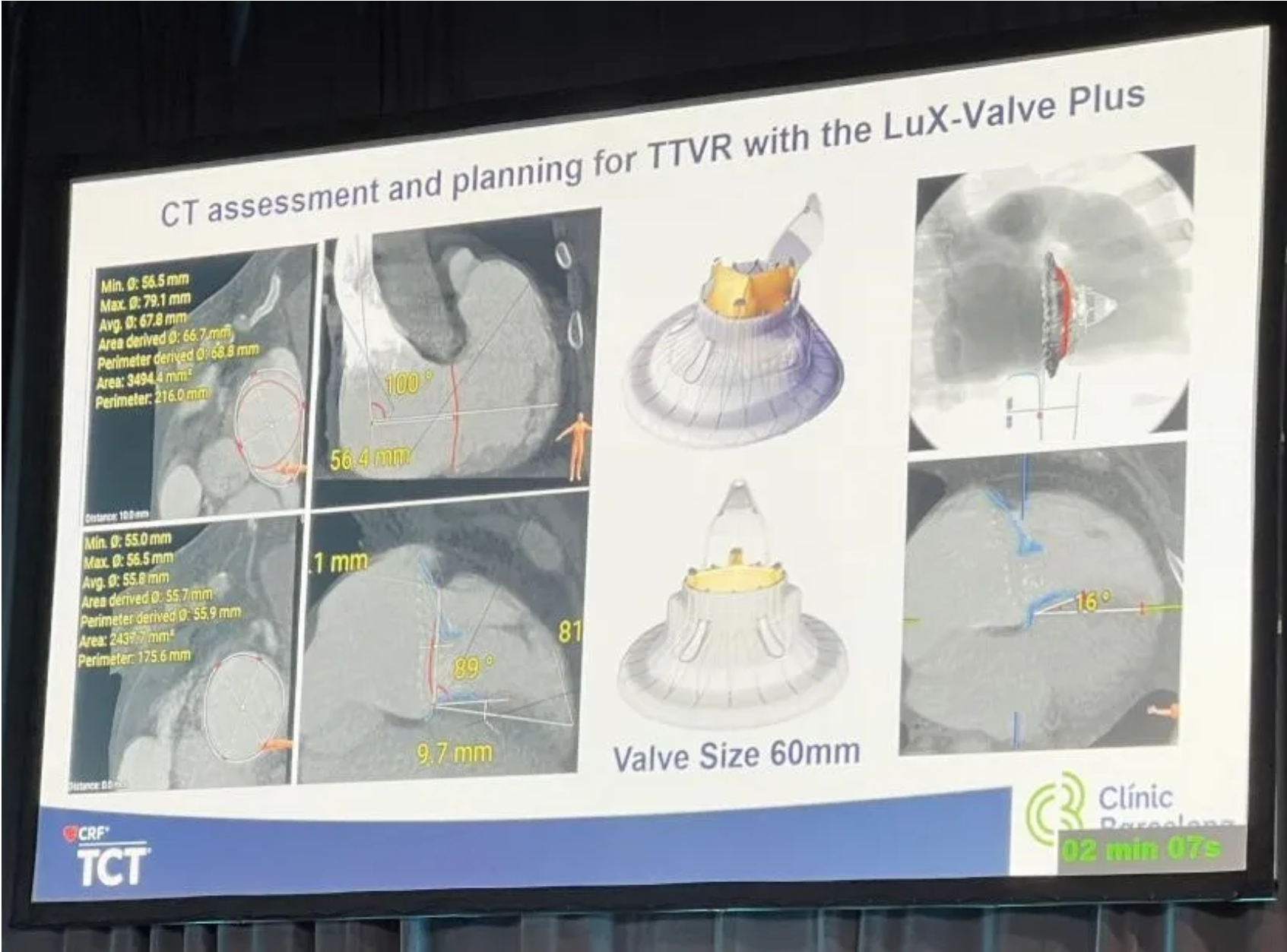 一位來自西班牙的術(shù)者在2024年美國經(jīng)導(dǎo)管心血管會(huì)議(TCT 2024)上進(jìn)行了一個(gè)病例報(bào)告的分享。一名 59 歲男性患者有肥胖、A型肝炎,永久性房顫等病史,同時(shí)患有三尖瓣心內(nèi)膜炎伴隨三尖瓣反流,右心衰,膿毒性肺栓塞,肺氣腫并需要長期待在ICU。根據(jù)巴塞羅那臨床中心醫(yī)院治療三尖瓣反流的流程,因?yàn)椴荒芙邮艿母唢L(fēng)險(xiǎn)患者首先拒絕了開胸手術(shù)這個(gè)選項(xiàng);隨后在評估是選擇修復(fù)還是置換路徑的時(shí)候,由于患者瓣環(huán)擴(kuò)張嚴(yán)重而且中間有較大開口,因此在CT評估決定后,該中心選擇LuX-Valve Plus系統(tǒng)進(jìn)行三尖瓣置換術(shù)式。